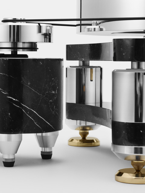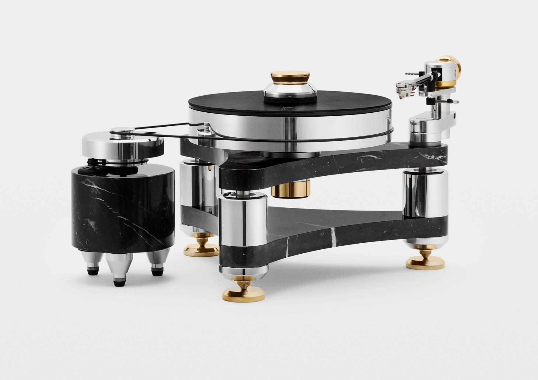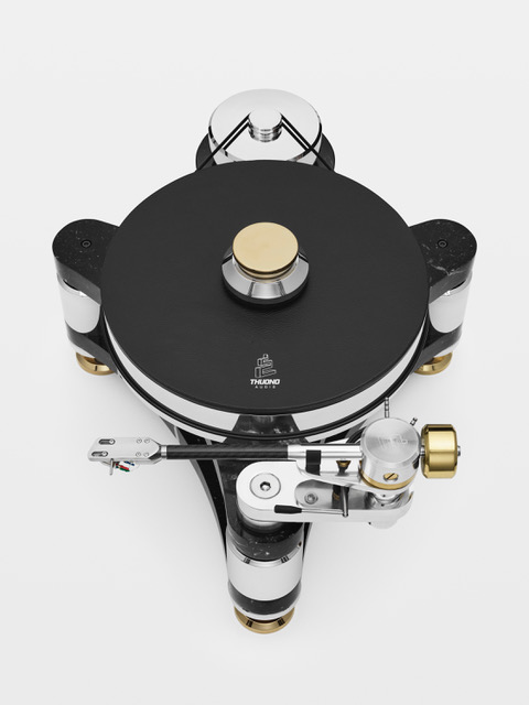 TH300 — самый компактный проигрыватель THUONO AUDIO, несмотря на этом, в нем сохранены ключевые элементы, обеспечивающие превосходные звуковые характеристики, такие как система двигателя, состоящая из маховика, магнитных подвесок и винтового зажима. В отличие от других проигрывателей этой серии, диск вращается на перевернутой оси, прикрепленной к основанию. Корпус полностью изготовлен из мрамора Nero Marquinia.